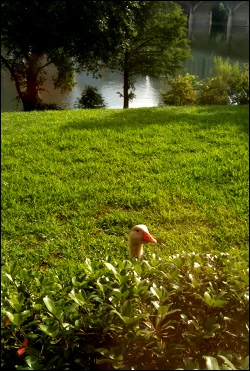 The photo of the goose above was taken at the writer’s conference I attended in June. This goose hung out near the windows where writers had their consultations with agents.
